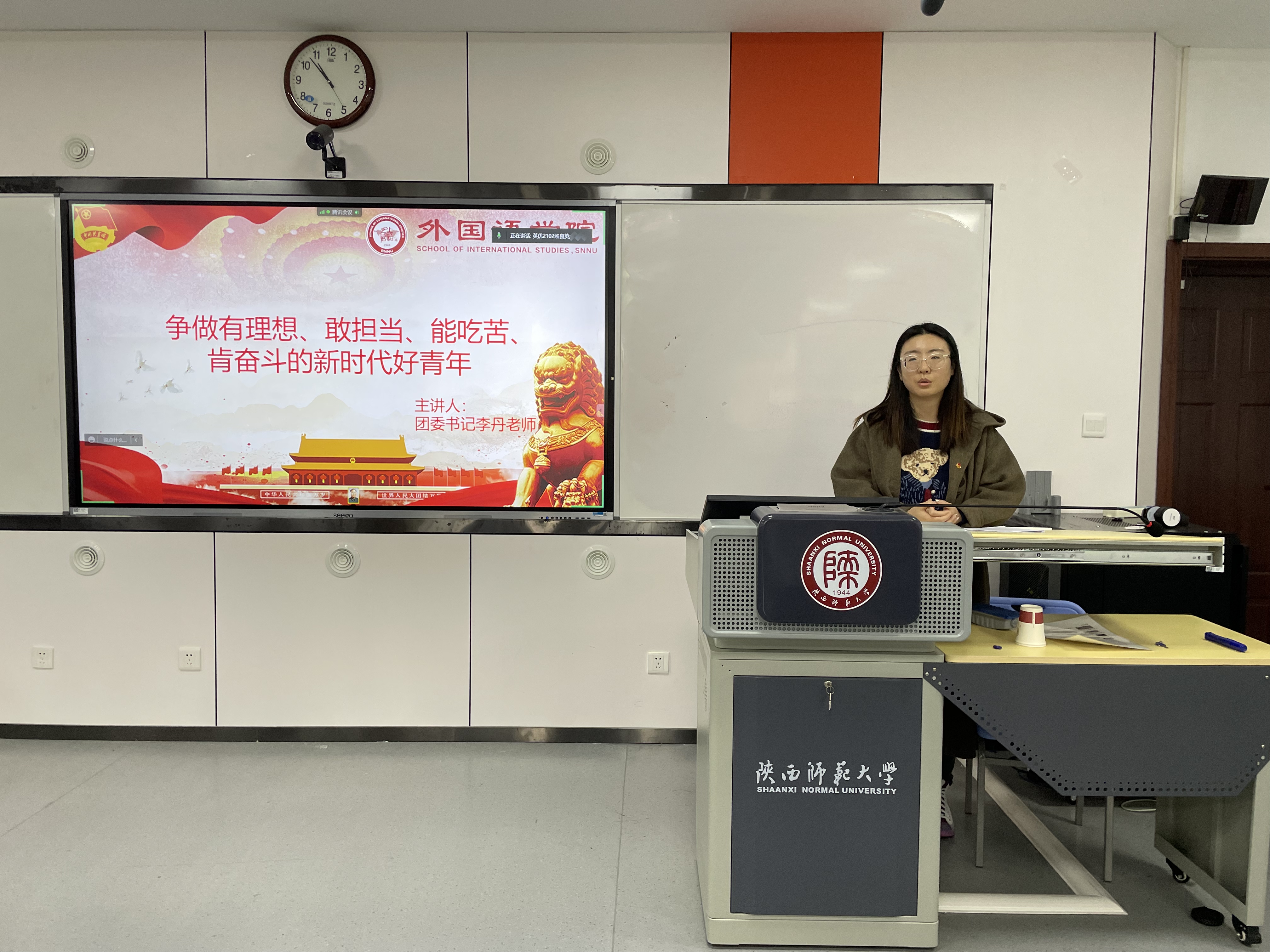 会议第一项由太阳集团tyc4633团委书记李丹传达校团委相关文件精神并领学党的二十大精神。她激励同学们作为新时代的接班人,要踔厉奋发;作为外语人,要锤炼自己的专业能力,讲好中国故事;作为师范人,要发扬“西部红烛精神”,教育报国。最后,李丹对本月团日活动开展提出具体要求,鼓励团支书在团日活动设计上不断创新,采用同学们喜闻乐见、通俗易懂的形式,围绕思想引领、志愿服务、创新创业等主题,让团日活动更加有声有色,进一步把全院团员青年的思想统一到党的二十大精神上来,把力量凝聚到党的二十大确定的各项任务上来,为公司、公司共青团工作贡献力量。