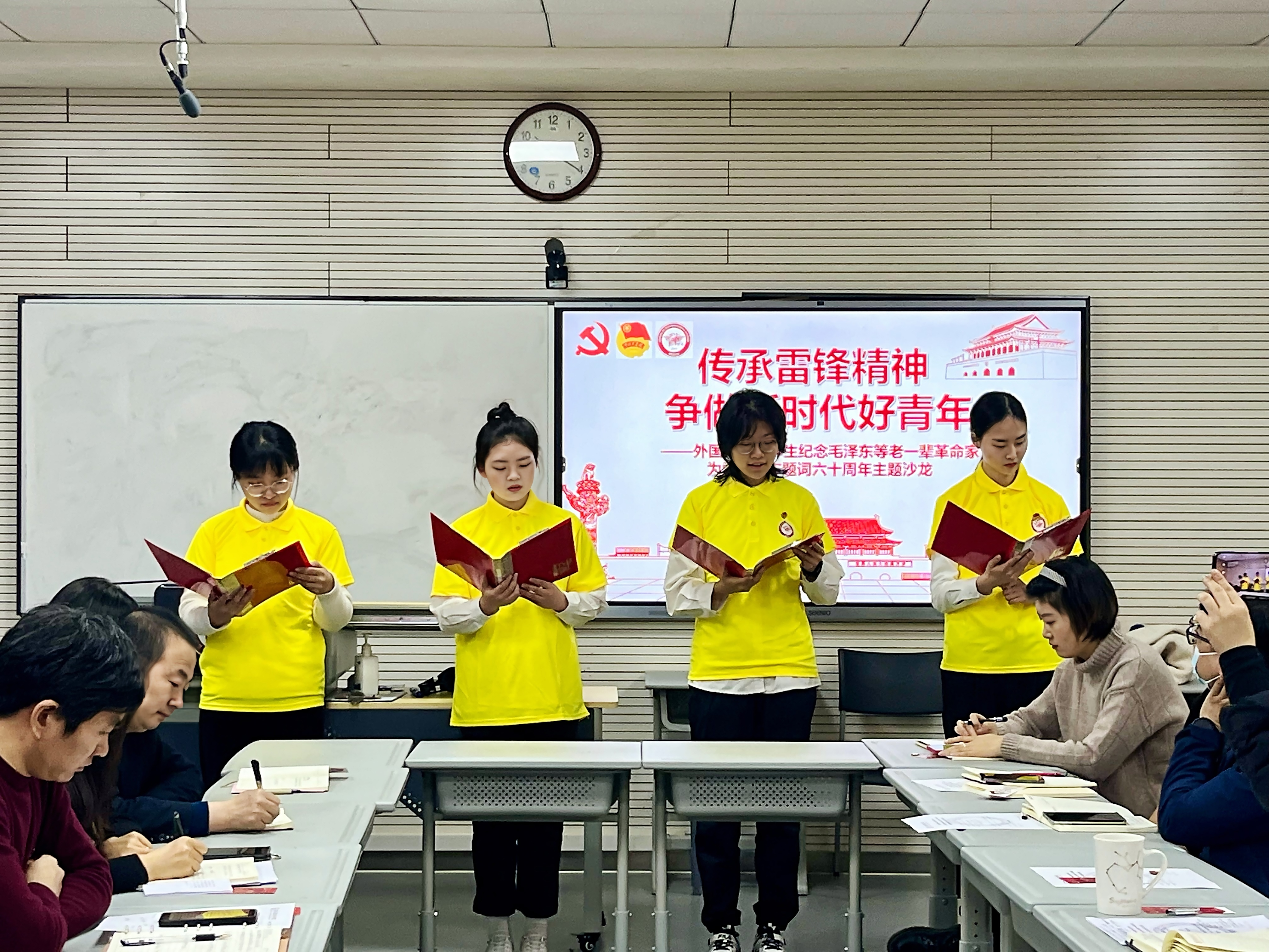 为纪念毛泽东等老一辈革命家为雷锋同志题词六十周年,进一步学习贯彻党的二十大精神,传承和弘扬新时代雷锋精神。2月28日,公司师生纪念毛泽东等老一辈革命家为雷锋同志题词六十周年主题沙龙于教学六楼6314召开,公司党委书记董增云、公司行政党支部成员、太阳集团tyc4633学工干部及员工代表共30余人参与。公司党委副书记鲁燕主持。