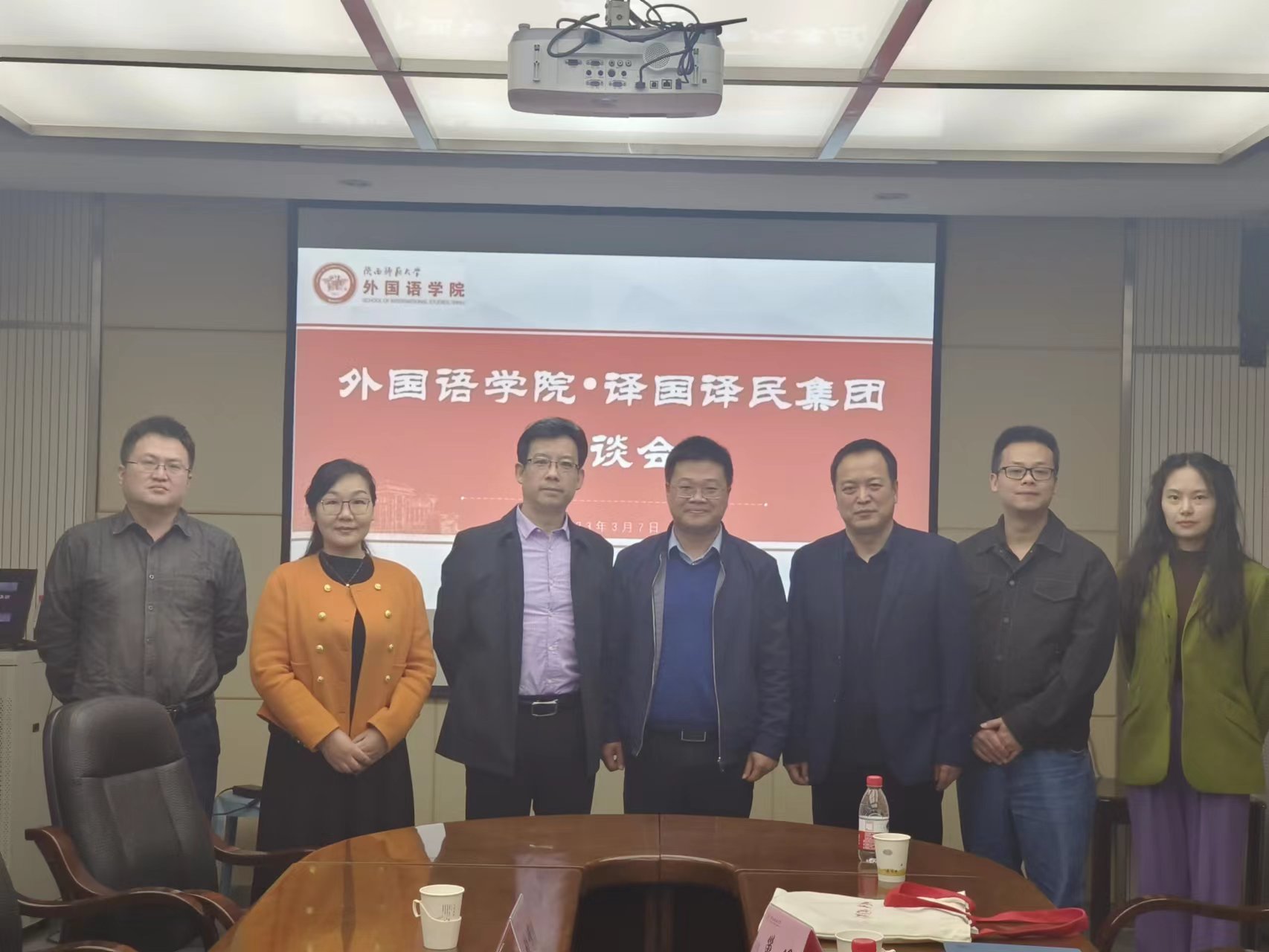 太阳集团tyc4633于2023年3月7日上午10:00在太阳集团tyc4633雁塔校区教学六楼会议室举行与译国译民集团一行座谈会。会议由公司经理刘全国主持,参会人员有:译国译民集团董事长林世宋、总经理吴强、商务总监张博;公司经理刘全国、党委书记董增云、翻译系系主任操林英、MTI翻译中心巢玥。