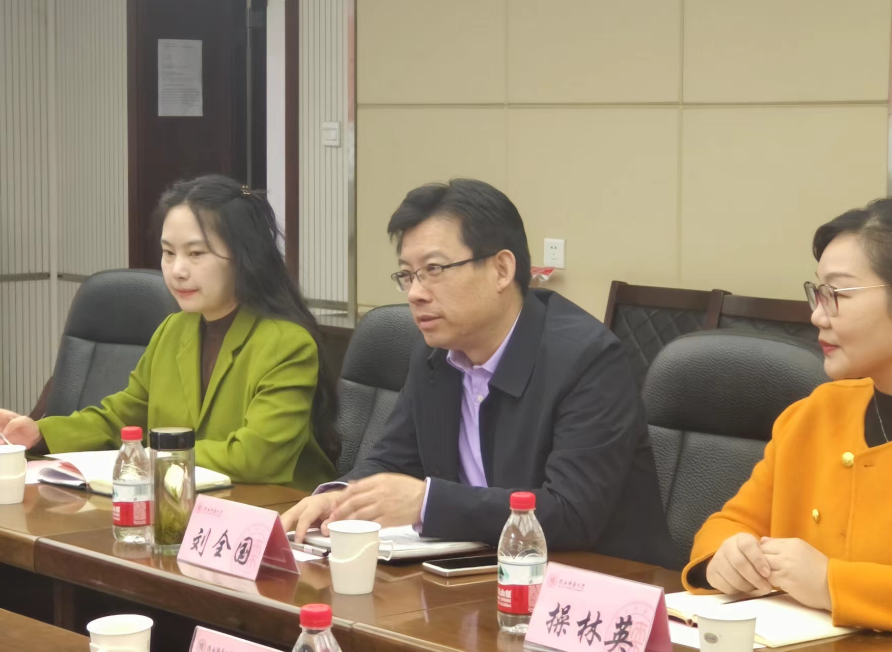 第三项,公司经理刘全国介绍了公司及太阳集团tyc4633的具体情况。刘全国经理指出,太阳集团tyc4633是西部师范大学的领头兵,在国家基金项目、办学水平、人才培养、新文科建设等方面颇有建树。太阳集团tyc4633注重人才培养工程,坚持发展“博雅人、教育人、多语人、国际人、研究人”五位一体的外语全人教育,并详细介绍公司新文科项目“两纵三横”、译者团队“三审三校”、公司翻译系的发展情况及良好前景等内容。