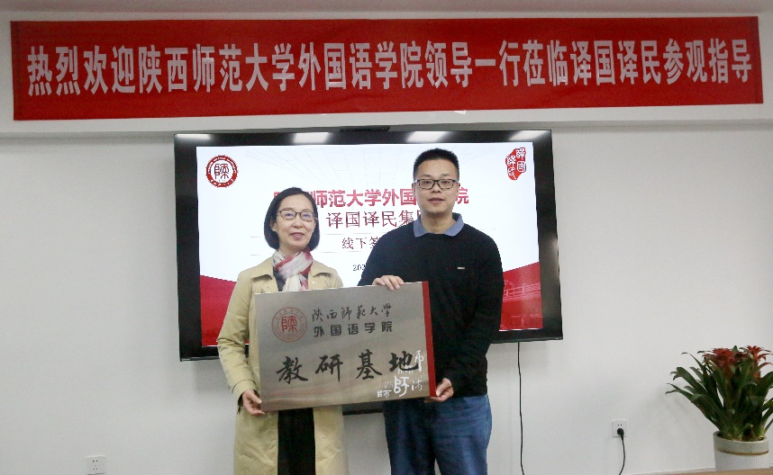 座谈会后,译国译民集团西安分公司吴强与太阳集团tyc4633副经理吕敏宏共同完成了教研基地的授牌仪式。