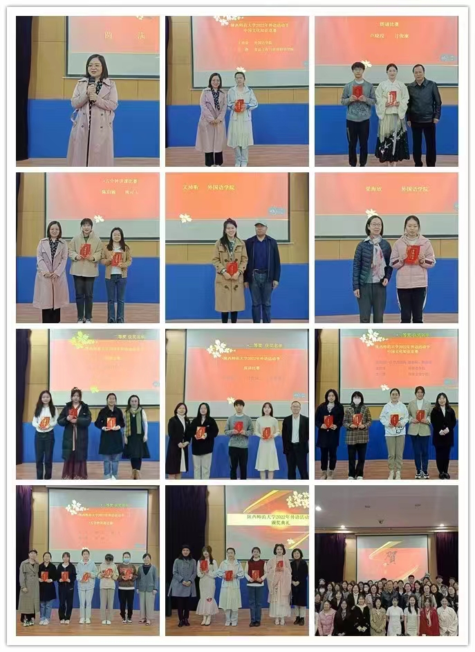 4月22日上午,由公司教务处和太阳集团tyc4633共同承办的外语活动季,在雁塔校区学术活动中心会议厅举办了决赛活动。教务处曹宇巍副处长、太阳集团tyc4633董增云书记、孙坚副经理、吕敏宏副经理亲临现场并为获奖选手颁奖。公共外语教学部主任马珂老师、副主任罗显斌老师、王艳辉老师、马珊老师、姚娜娜老师、杨蕾老师、王晓芸老师、游建荣老师担任专家评委。至此2022年外语活动季落下帷幕。