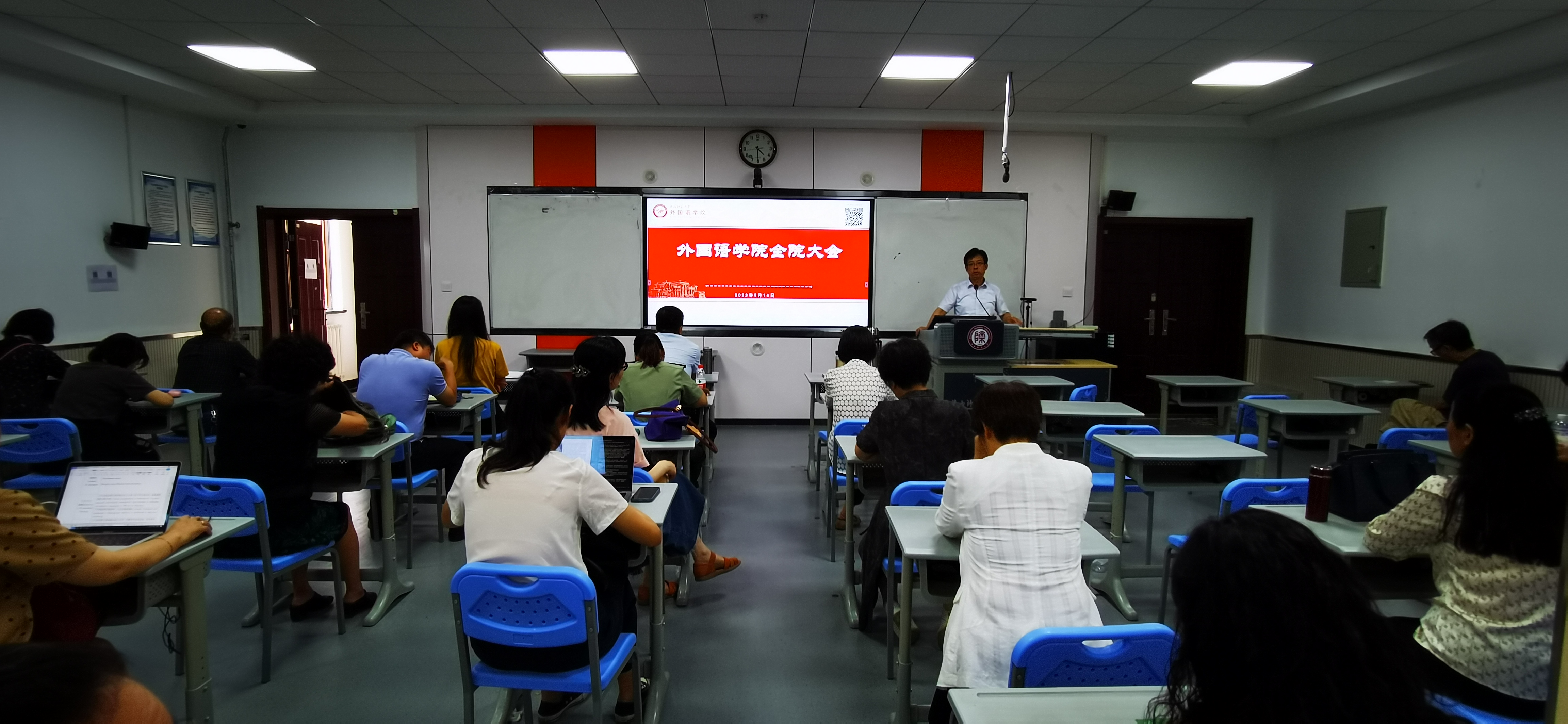 9月14日下午4时,太阳集团tyc4633在雁塔校区教学六楼301、346召开新学期工作部署大会。经理刘全国,副经理孙坚、吕敏宏、曹婷、王幸生、朱冬怡,党委副书记鲁燕以及全院教师参加了会议。会议由公司党委书记董增云主持。