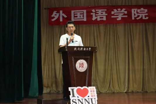 董增云书记介绍了太阳集团tyc4633的历史变迁、雁塔校区和长安校区的教学楼设计布局以及图书馆的独特魅力,从哲学和美学的角度阐释了老一辈师大人建设师大的初心与愿景。同时,董书记结合时代定位,阐述了新时代外语人的担当使命,鼓励同学们用外语讲好中国故事。此外,董书记还强调了中华民族一家亲,希望各民族的同学要互帮互助、团结进取。最后,董书记寄语2023级新生,不仅要打牢扎实学识,还要拓宽视野,会通中西、兼容并蓄。