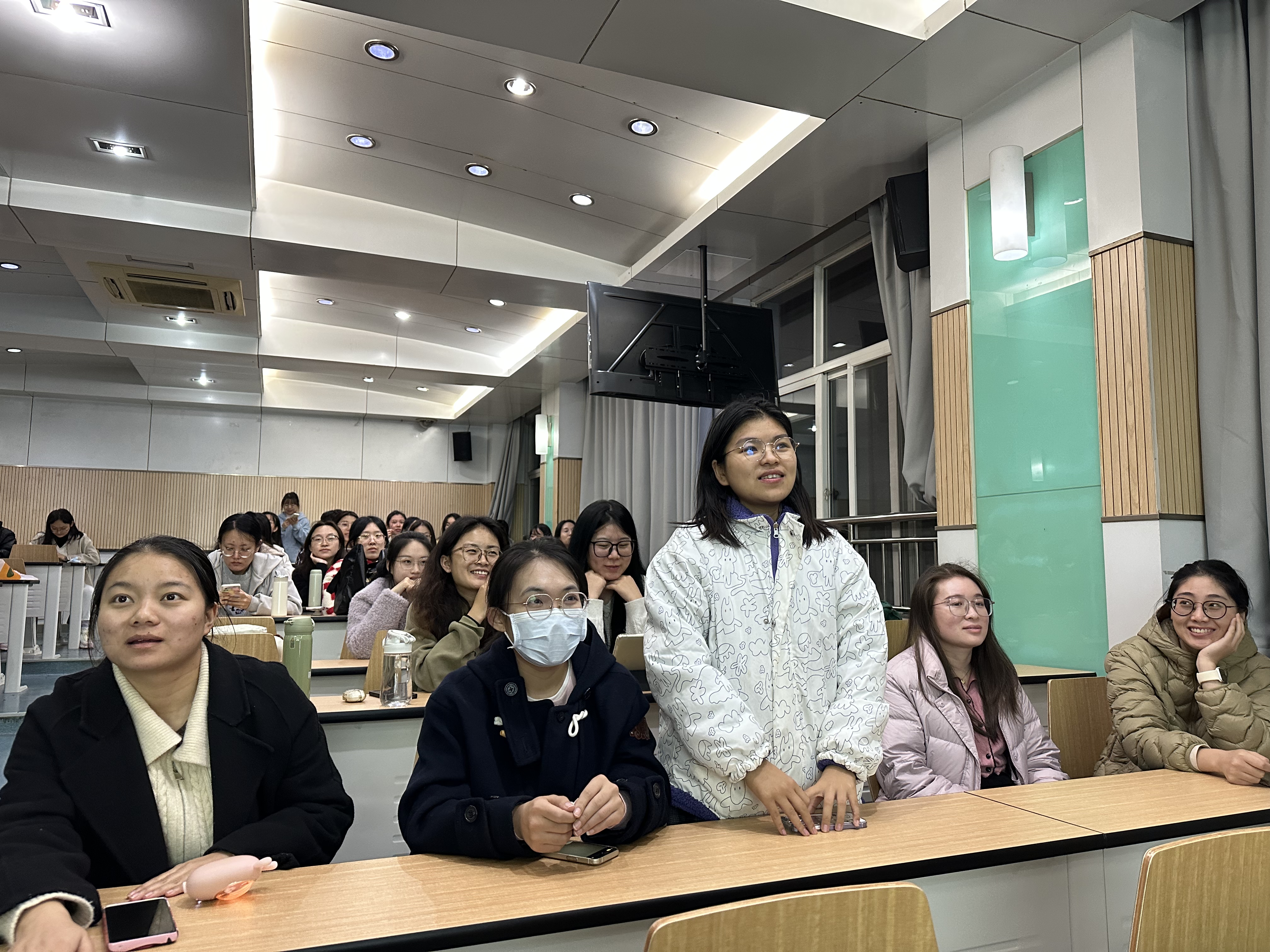 董洁对报告会进行了总结,她希望同学们以李丽丽学姐为榜样,积极乐观、不断尝试,在奋斗中获得个人的成长和幸福。