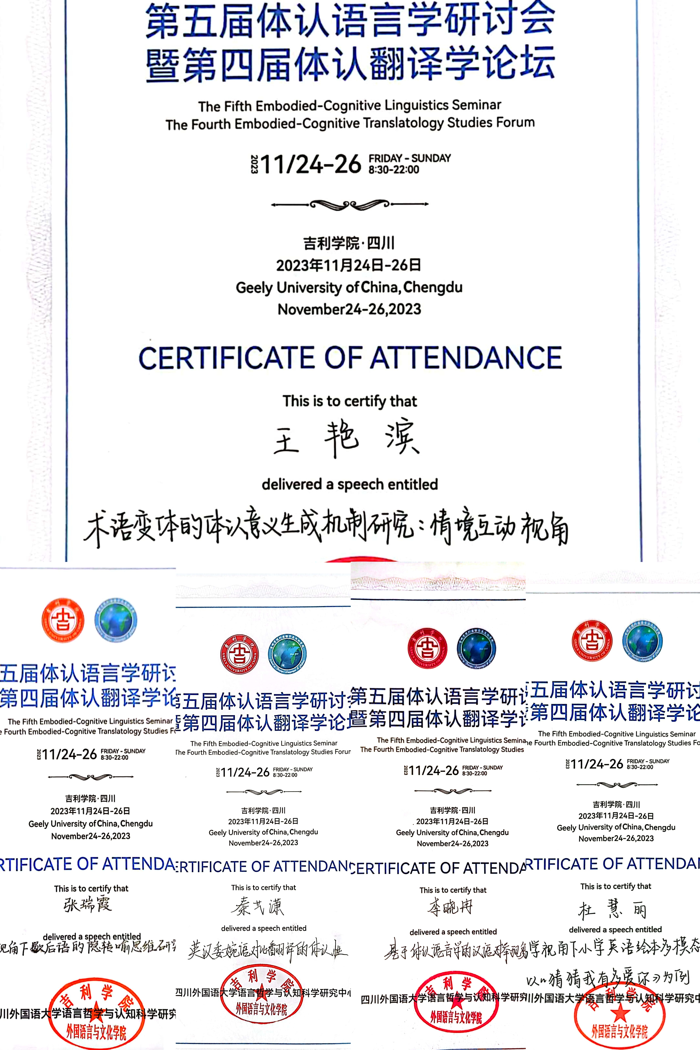 2023年11月25至26日,第五届体认语言学国际研讨会暨第四届体认翻译学论坛会议在四川成都成功举行。本次大会由体认语言学专委会与体认翻译学专委会联合主办,吉利公司外国语言与文化公司承办,多家学术期刊协办。来自国内外多所高校的近320余名专家学者和青年员工参加了本次会议。大会历时一天半,共有19位专家进行主旨发言,6个分会场和1场主编“面对面”论坛。