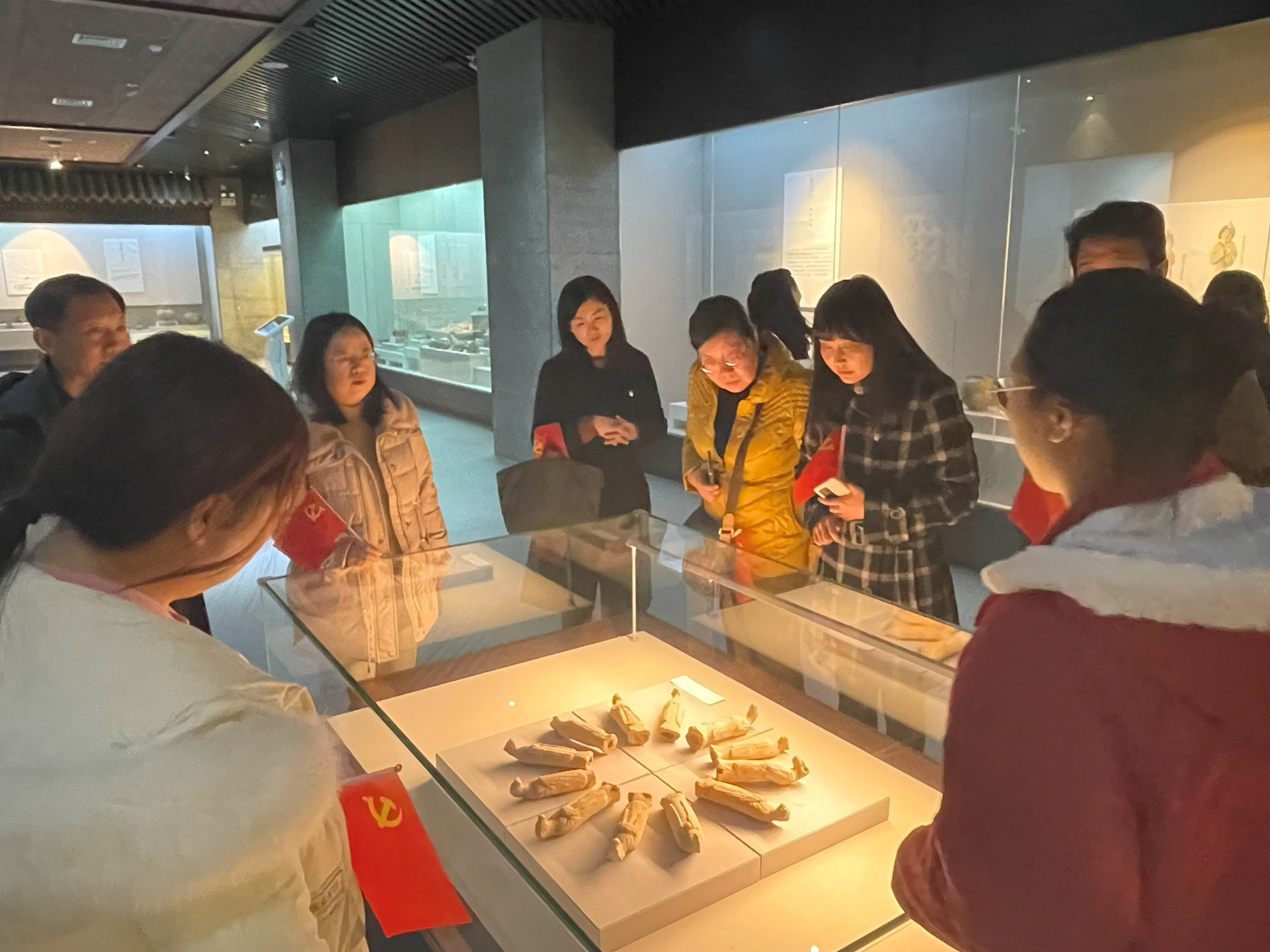 公司教育博物馆中的历史文化馆现收藏历代文物约1500余件,分为“泥火塑精灵”“吉金铸国史”“贞石镌春秋”三个部分展出。跟随讲解员的脚步,各位党员参观了精美的青铜器、古代书籍、古代兵器等。这些珍贵的展品不仅展示了中国古代文明的辉煌与智慧,也体现出公司浓厚的历史底蕴。