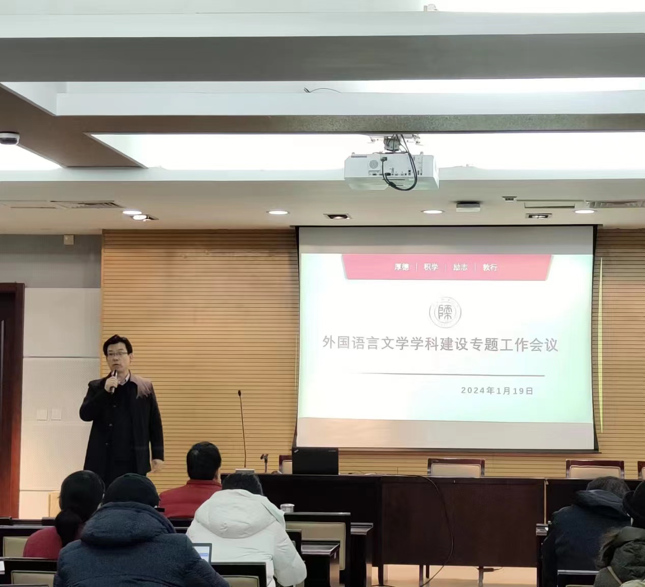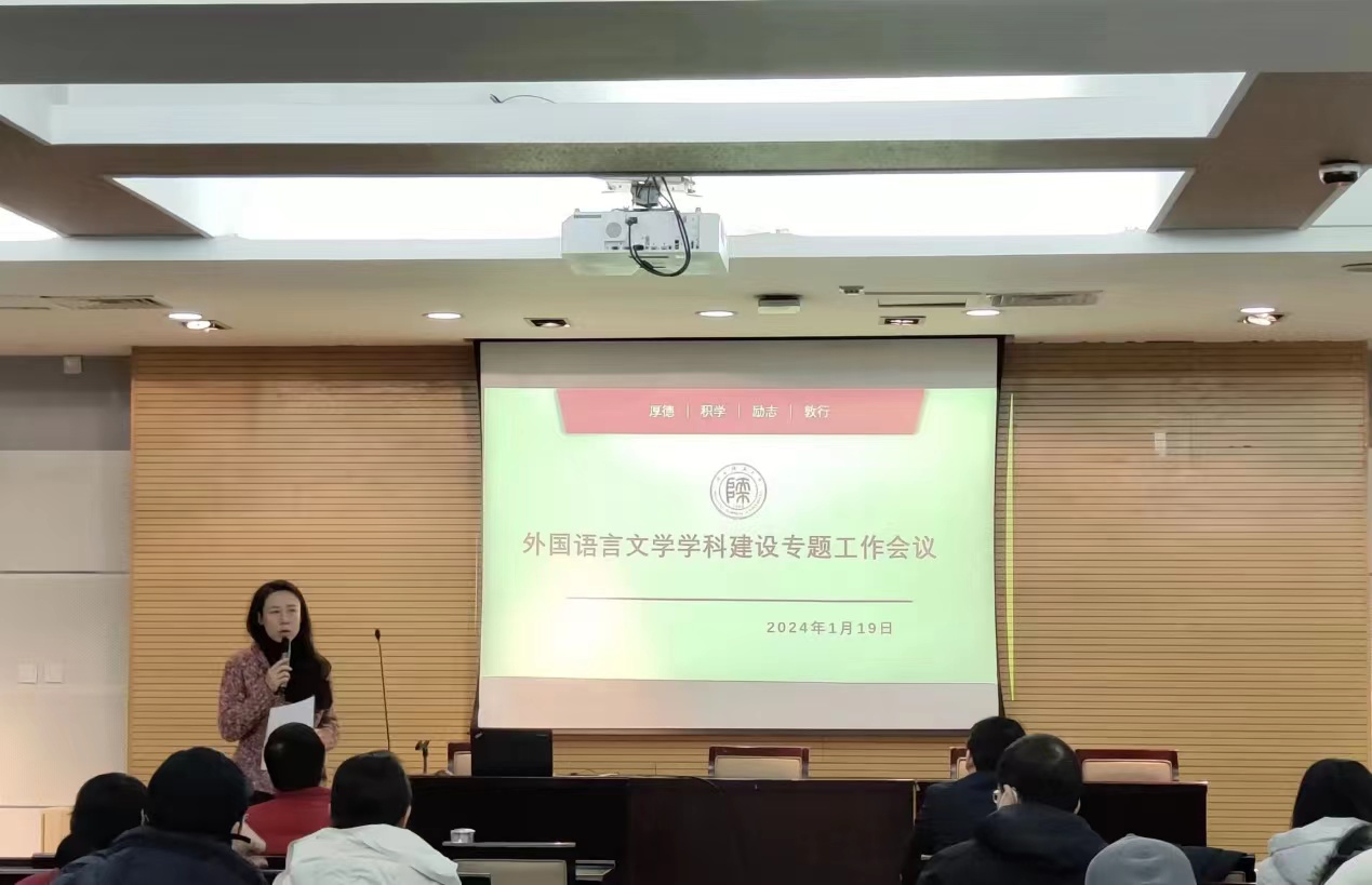 会议伊始,公司经理刘全国教授提到了外国语言文学学科面临的形势,指出要促进团队建设和转型,并介绍了学科结构以及当前存在的问题,进一步提出了学科发展方向和举措,提出要继续开展学术活动,加强学术交流,积极引进外部人才,注重内部人才的培养,强化团队队伍建设,同时要做到教学和科研的均衡发展。