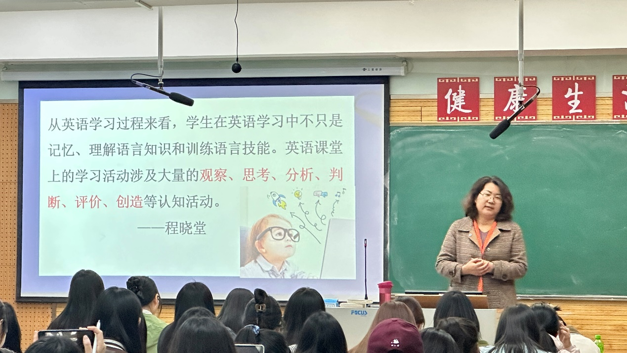 王兰英老师凭借自己对中学英语课堂教学和义务教育课程标准的独到见解,深入浅出地介绍了义务教育英语课程标准中课程性质、学段目标等方面的关键点。王老师强调,时代在不断更新,要以发展的眼光分析不同版本课程标准的嬗变,重点关注新的课程理念,借助英语发展员工的核心素养。