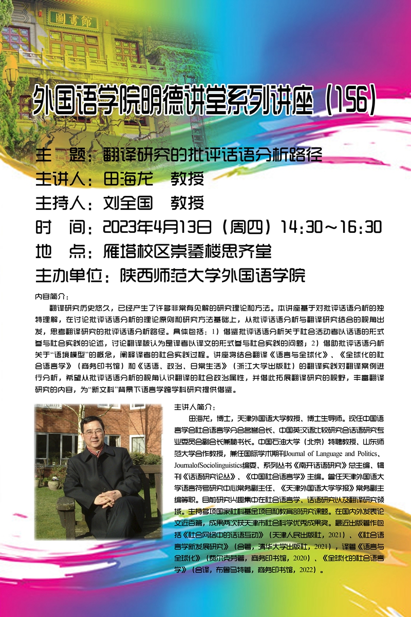 太阳集团tyc4633明德讲堂系列讲座(156) 预告