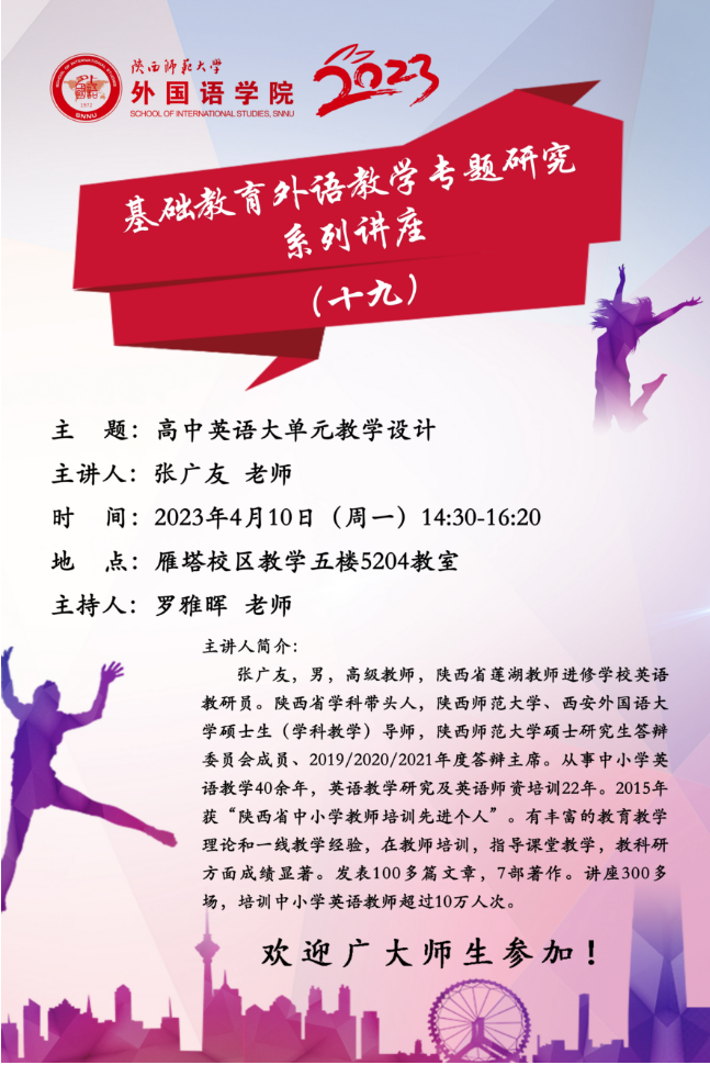 基础教育外语教学专题研究系列讲座(十九) 预告