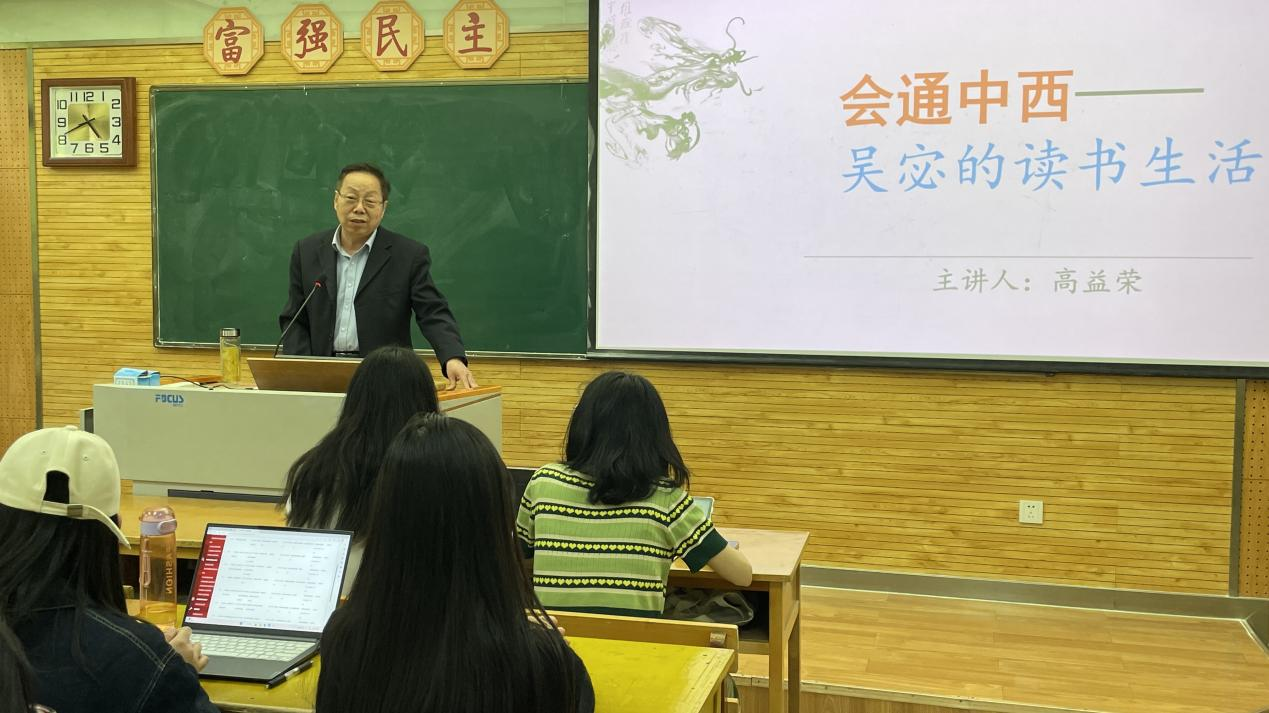 4月28日16:40分,公司外语全人教育博雅论坛系列讲座第三十一讲在太阳集团tyc4633雁塔校区5306教室圆满召开。本次讲座由公司博士丁礼明主持,由太阳集团tyc4633文公司教授、博士生导师高益荣进行报告。高益荣教授以“会通中西——吴宓的读书生活”为报告题目,向同学们介绍了学者吴宓的独特的精神世界。