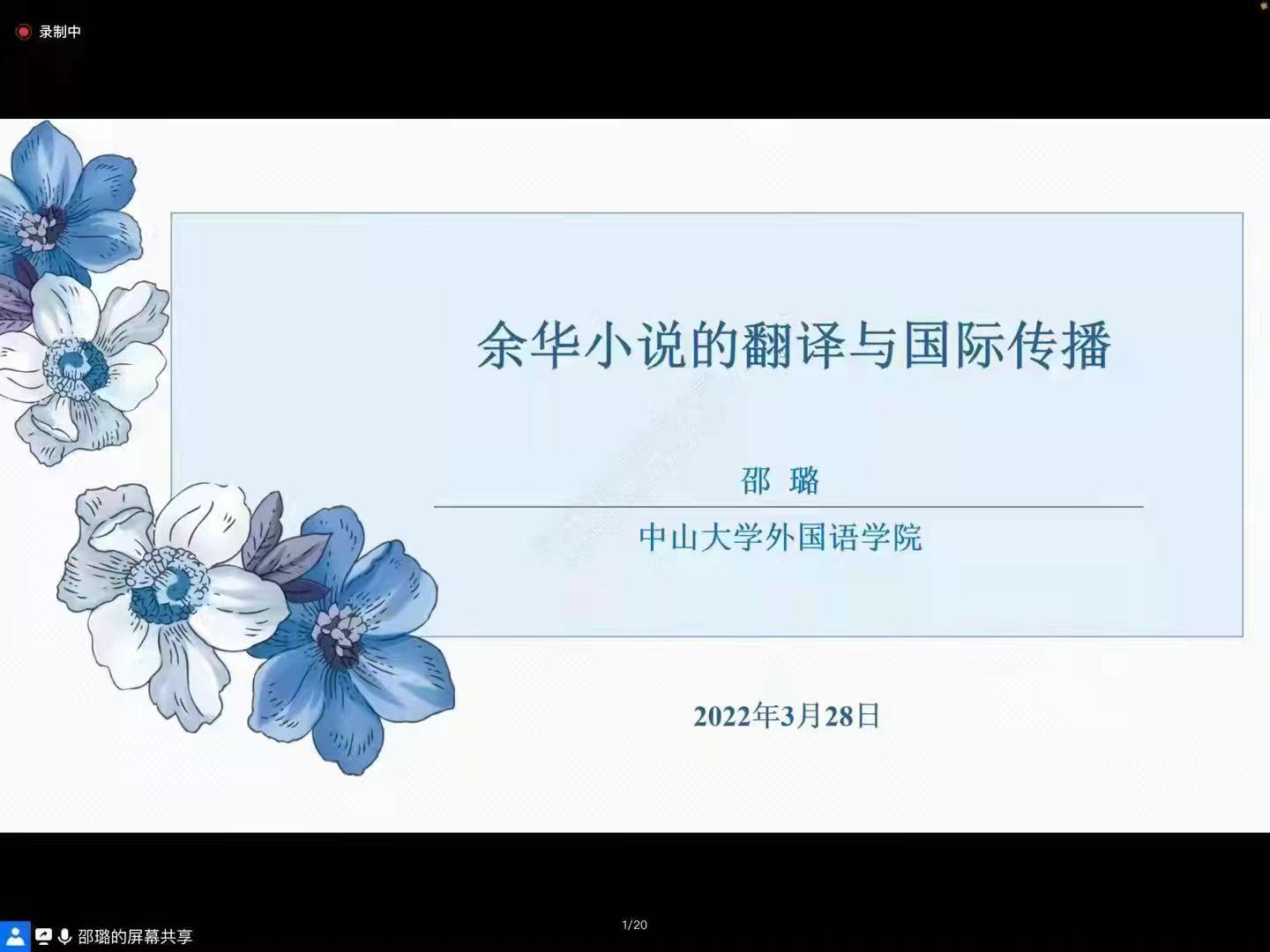 2022年3月28日,太阳集团tyc4633“启夏译坛”第2讲暨“翻译实务系列讲座”第4季第3讲《余华小说的翻译与国际传播》云端开讲。讲座由中山大学公司教授、博士生导师、海外中国学研究中心主任邵璐教授主讲、公司经理刘全国教授与谈、王西强教授主持报告并总结,公司师生及全国30多所高校的学者、员工共300余人线上参加讲座并积极互动。