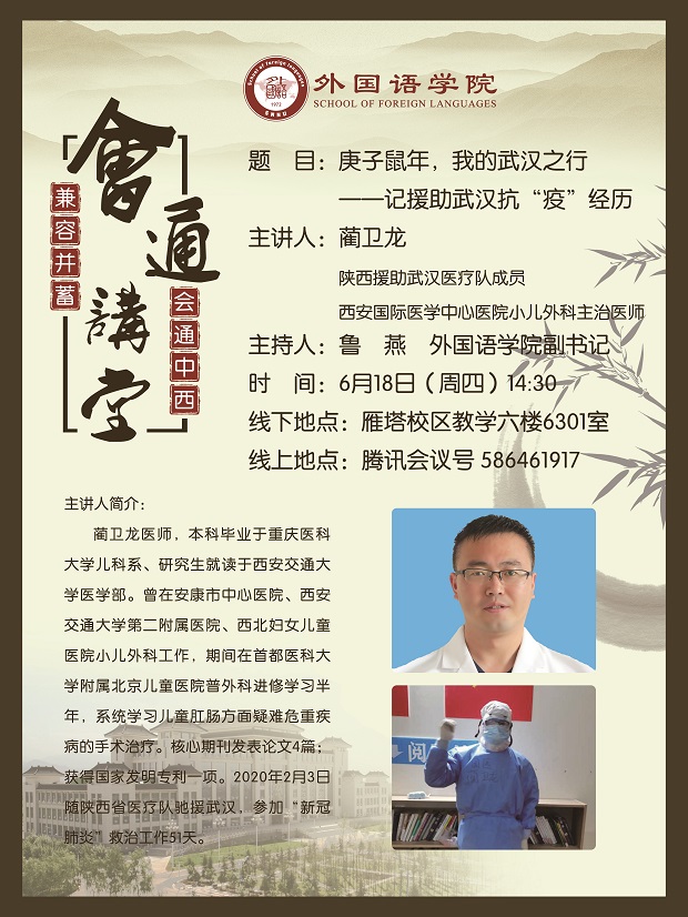 根据《太阳集团tyc4633关于做好2020年上半年教职工师德师风涵养教育的安排意见》和公司2020年工作要点要求,各公司要深入学习贯彻落实习近平总书记对疫情防控工作的重要批示指示和讲话精神,深化爱国主义教育,强化“四个自信”。公司定于6月18日(周四)下午2:30举办公司“抗击疫情精神分享会”,特邀西安国际医学中心医院蔺卫龙医生分享自己在武汉的抗疫经历,请大家积极参加。
