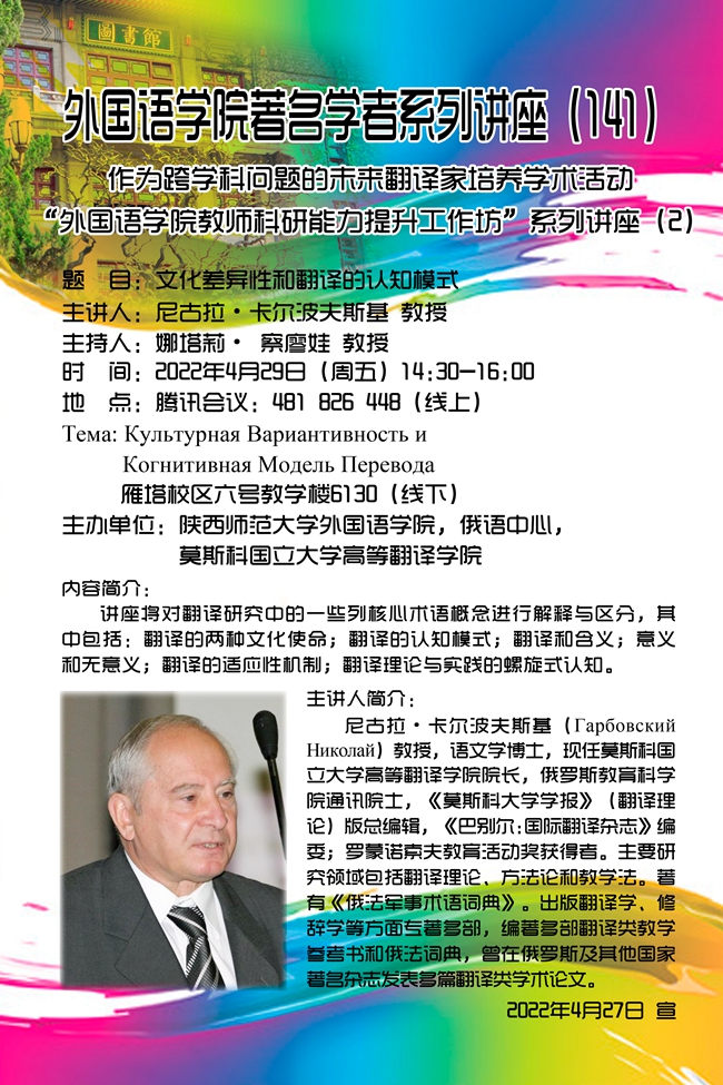 太阳集团tyc4633著名学者系列讲座(141)预告